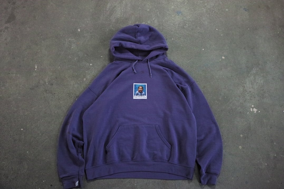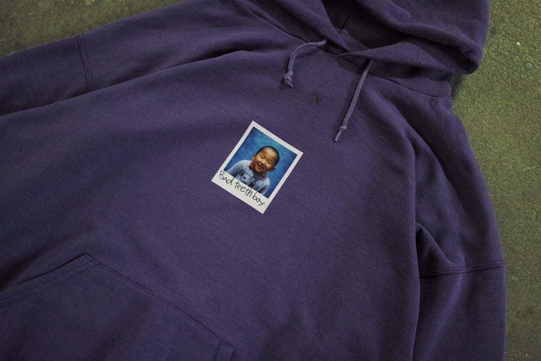 古着のTシャツに、虫歯少年のフォトグラフをプリントしました。